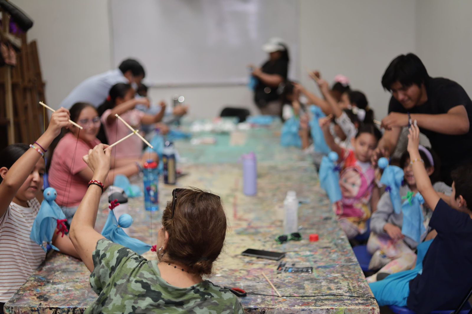 En el segundo taller de títeres, niñas y niños aprendieron a crear sus propias marionetas, con la técnica mixta de manipulación, despertando su creatividad, desarrollando habilidades artísticas y fomentando el trabajo en equipo en un entorno de alegría y convivencia.