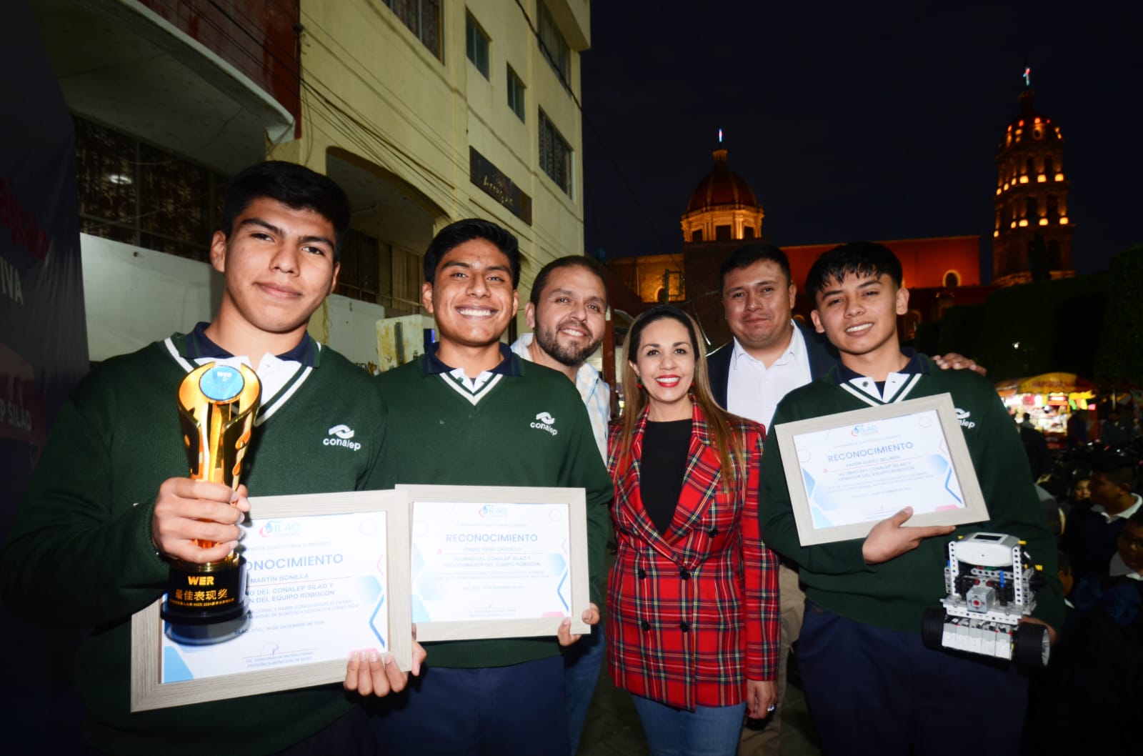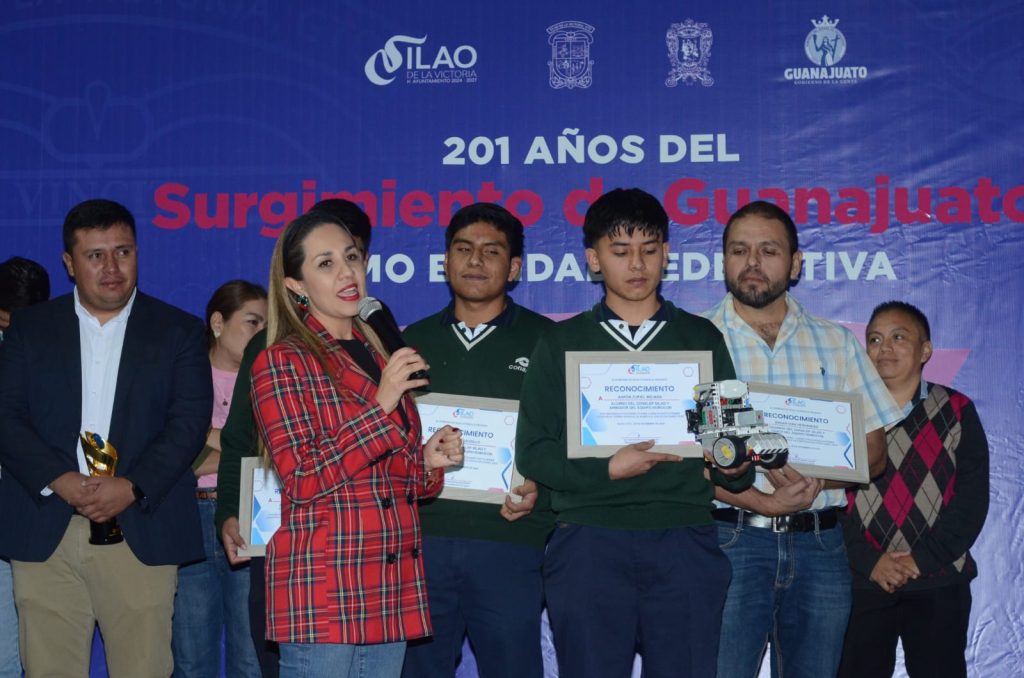 “Ellos son parte del orgullo de ser guanajuatenses. Ellos son alumnos del CONALEP Silao y son campeones a nivel mundial. Gracias, campeones, por llevar el orgullo guanajuatense a una competencia tan importante”, expresó la Presidenta Municipal de Silao ante el coach Edgar Iván Hernández y los alumnos Martín Bonilla, Ángel René Caudillo y Aarón Zuriel Belmán, quienes integraron el equipo ‘Robocon’ que alcanzó el más alto puntaje en un torneo global altamente competitivo que congregó a más de 20 países.