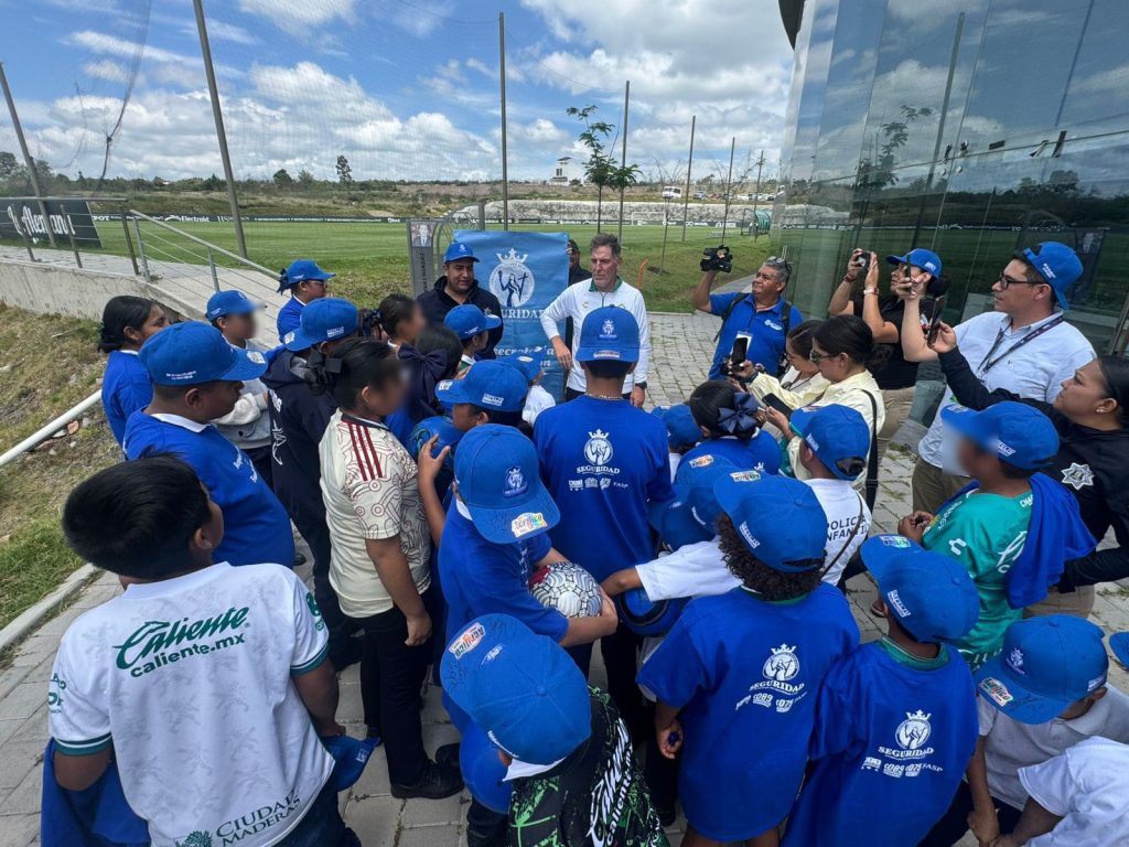 En La Esmeralda, la casa de entrenamiento y preparación del equipo verdiblanco, las niñas y los niños de Silao tuvieron la oportunidad de platicar con jugadores como el portero Óscar Jiménez; el mediocampista colombiano y ex astro del Real Madrid, James Rodríguez; y el delantero de origen argentino Rogelio Funes Mori.