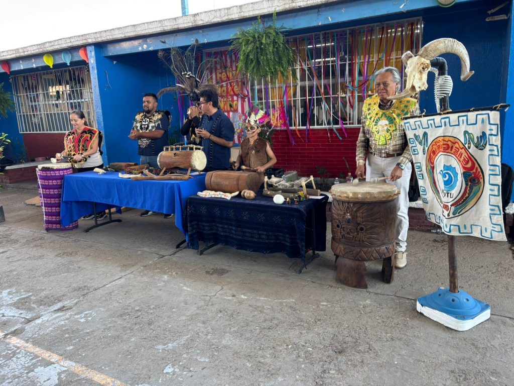 Durante la presentación del grupo de Música Prehispánica Necutli, se les explicó a los alumnos la cosmovisión de los ancestros mexicas, de cuidar la tierra y a la naturaleza, como ente dador de vida y sustento.