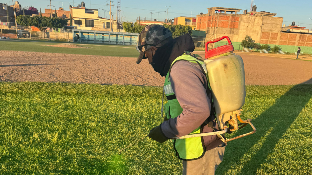 Con el objetivo de regenerar la apariencia, la densidad y la resistencia del césped del diamante, el área de Parques y Jardines del Gobierno de Silao realizó labores de fertilización durante el transcurso de este sábado.
