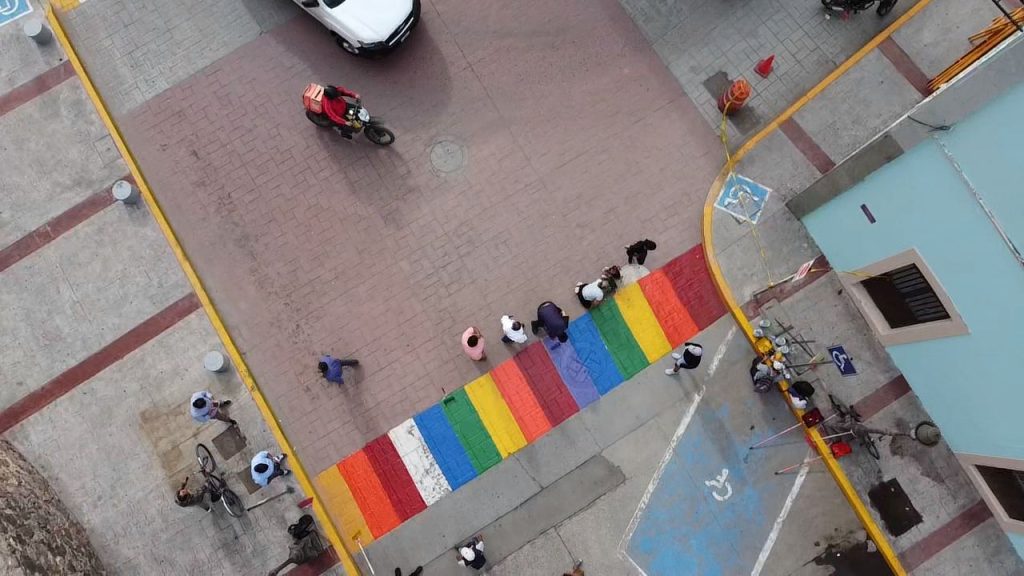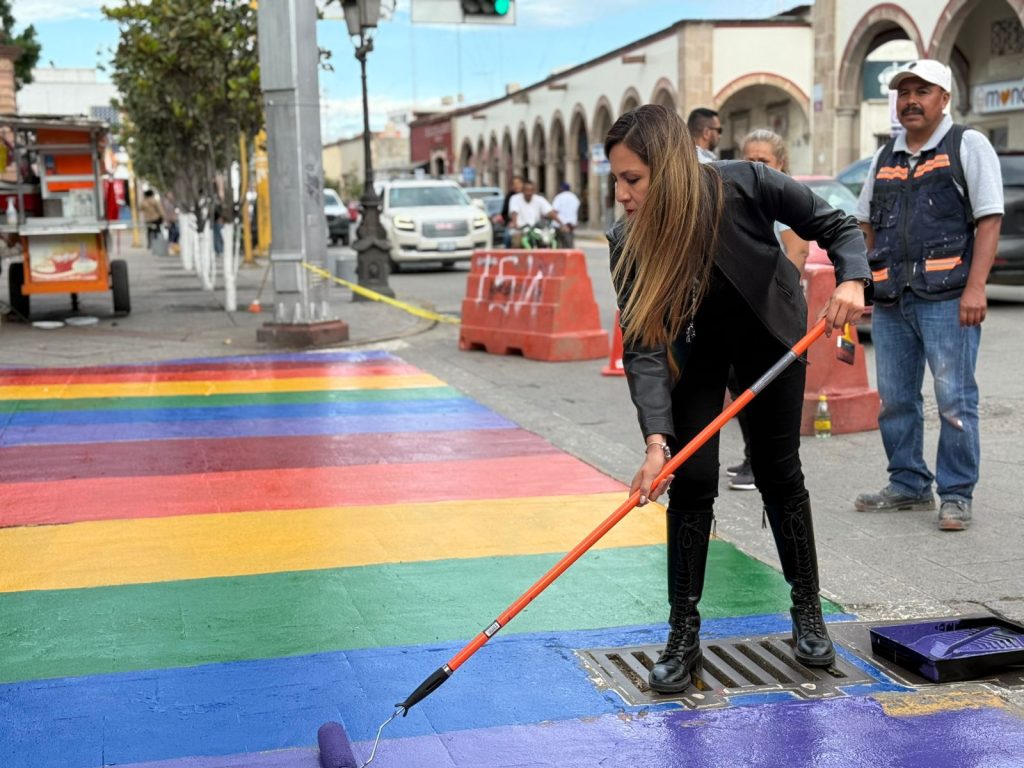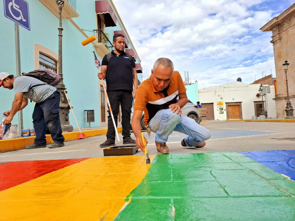 Con el objetivo de visibilizar los derechos de la comunidad LGBITQ+, la Dirección de Derechos Humanos del Gobierno de Silao y el colectivo ‘Diversidad Sexual’ pintaron pasos peatonales en la zona centro con los colores de la bandera que simboliza la diversidad.