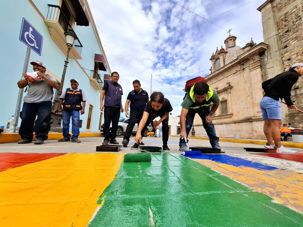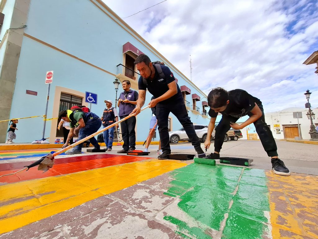Pintan pasos peatonales del centro de Silao con colores de la diversidad