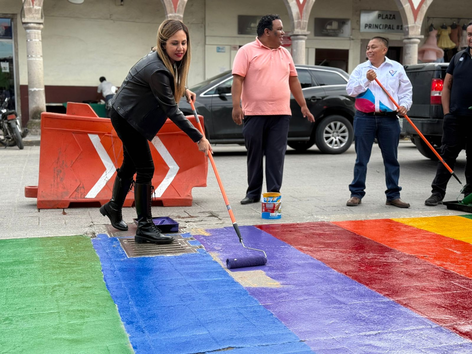 “Estamos llenando con los colores de la diversidad este paso que da entrada a nuestro jardín principal”, dijo la alcaldesa de Silao, Melanie Murillo, al momento de empezar a pintar alrededor del jardín principal.