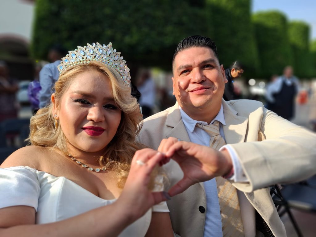 Juana Gabriela Pedroza y Juan Pablo Huerta, la novia y el novio insignias, expresaron un agradecimiento con todo el corazón por estas 58 bodas sin costo alguno, ya que contribuyeron a consolidar familias.