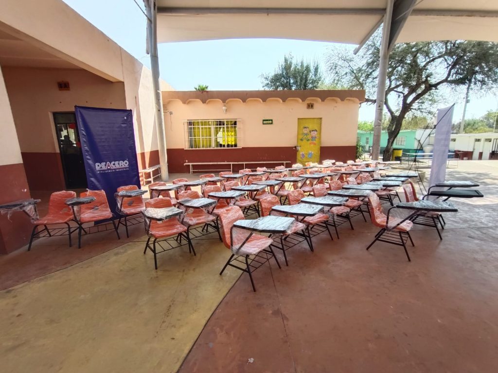 La empresa de origen regiomontano DEACERO donó 210 pupitres a la escuela primaria “Josefa Ortiz de Domínguez”, ubicada en la comunidad Refugio de los Sauces, en el municipio de Silao.
