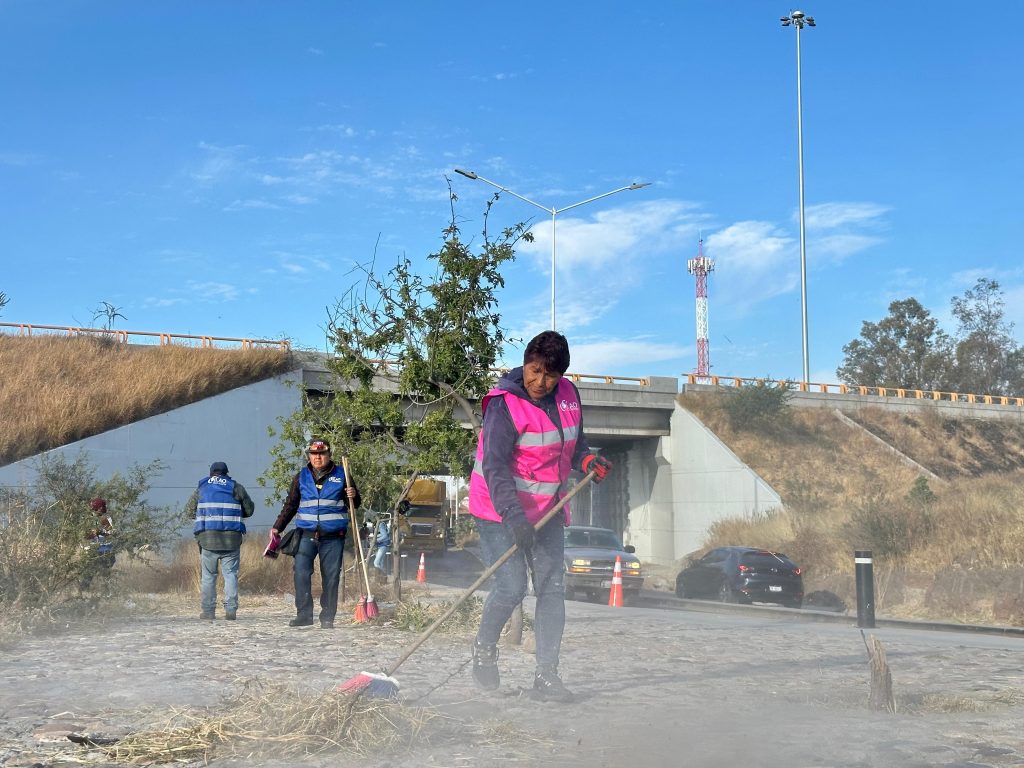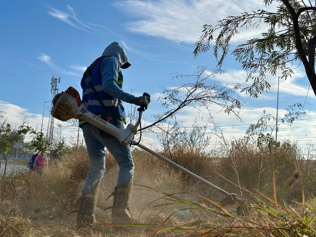 Los Gobiernos de Silao y León se unieron para realizar actividades de limpieza, mantenimiento y desyerbe en el distribuidor vial Comanjilla-Refugio de los Sauces.