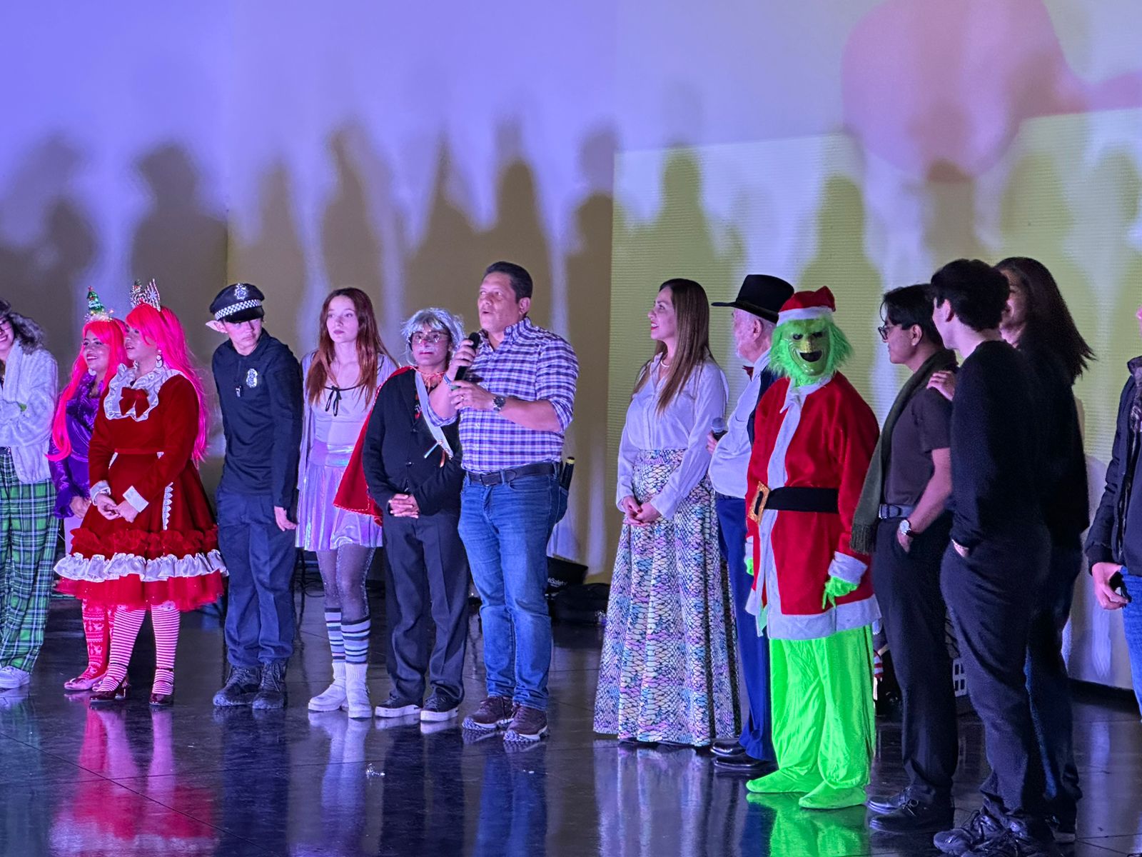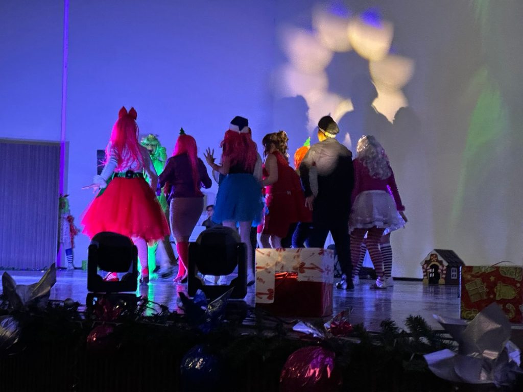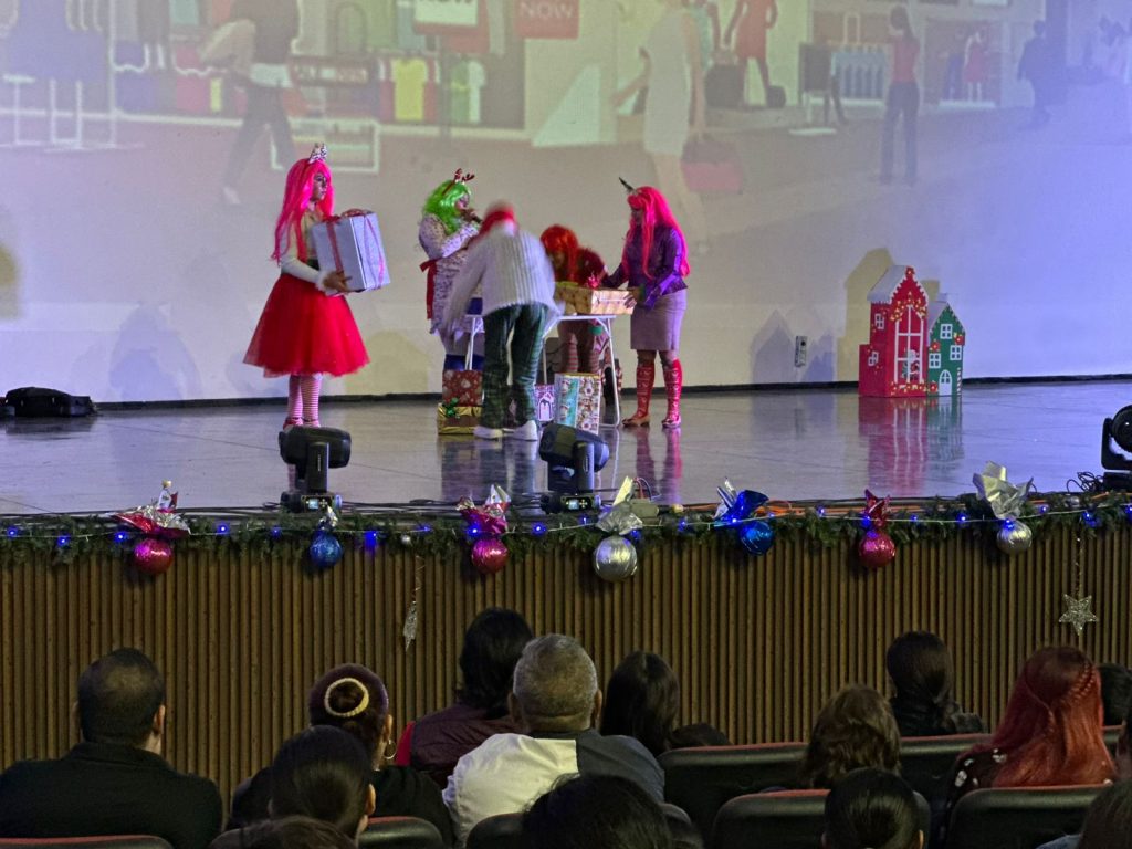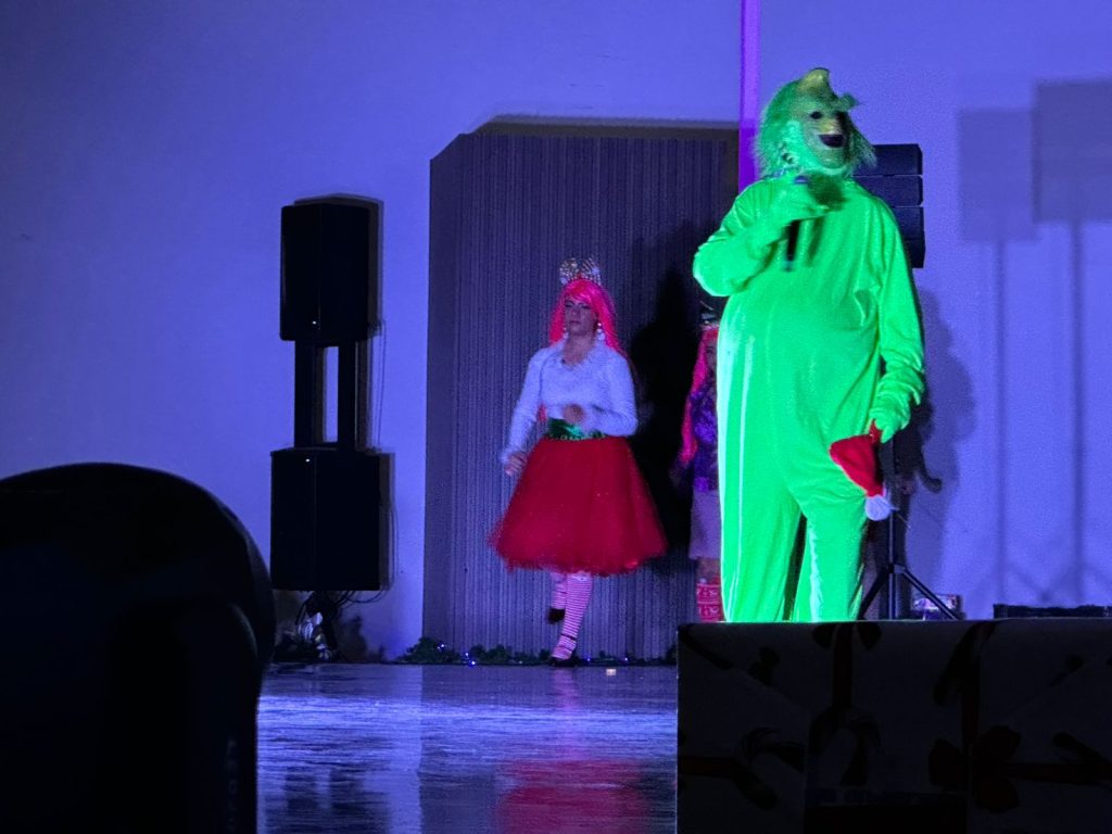 Con más de 30 actrices y actores en escena, el espectáculo musical “El Grinch” tuvo lleno total en el Teatro de Silao este viernes 13.